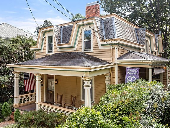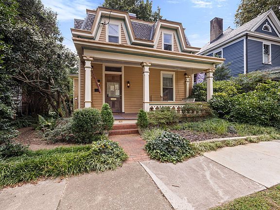 Ring the 19th-century doorbell and step back in time as you enter the William J. Hawkins Carriage House (c. 1875), nestled in the Historic Oakwood neighborhood in Downtown Raleigh. From the Second Empire mansard roof with scalloped slate shingles to the heart pine floors, this 4-bedroom beauty is a classic with many original features. Soaring 10-foot ceilings, pocket doors, three decorative fireplaces with tile hearths, a clawfoot tub, built-in shelves, and a walk-in crawlspace are among the many things to love about this carriage house. The front porch is perfect for relaxing with a cold drink or chatting with the neighbors, and you can walk, bike, or scooter to the dog park and all the restaurants, festivals, museums, and shopping in Downtown Raleigh and the Person Street District from your new home! Home has been pre-inspected.