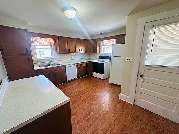 This 5-bedroom property offers plenty of space for a large family or host to rental potential/in law suite. 5 bedrooms, split with 2 bedrooms on one end with full bath and other half has 1.5 bathrooms. Large gathering area in the center of the home. It features beautiful hardwood floors and both a covered front and back porch, perfect for relaxing or entertaining. Located in a desirable neighborhood, this property has excellent rental potential with the potential to be converted back to a duplex. Home currently has 2 furnaces. 3 car detached garage. Partial basement. Additionally, the attic is accessible by stairs, providing potential for extra living space.