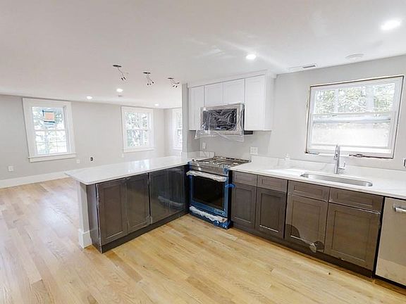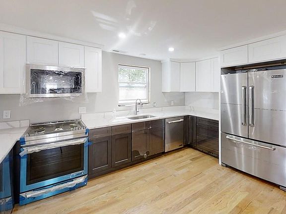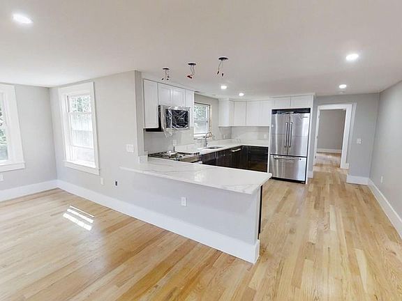 This two floor West Newton 3 bed 3 full bath apartment was completely gut renovated in 2020. The 2 fam bldg is conveniently located off Comm Ave, next to Braeburn Country Club, West Newton shops, with easy access to the D line T and the Mass Pike. The beautiful master suite has an enormous walk in closet & gorgeous tiled shower. The combination living and dining rooms boast beautiful hardwood flooring, a modern open floor plan, and large windows allowing for natural sunlight to pour in at all hours of the day. The kitchen has all of the expected high end finishes with stainless steel appliances and stunning marble countertops. Up stairs boasts plush and comfortable carpeting, a bonus space, bedroom, full bath! Central A/C and gas heating cool and warm the apartment. There's also a private deck off the entry hallway. There are two parking spaces included, 1 garaged, 1 outdoor. W/D are in the unit. Truly rare and stunning apartment!