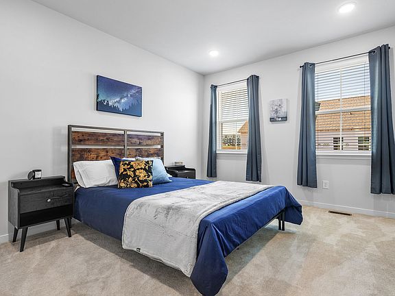 Three bedrooms, each with its own full bathroom, walk-in closet, blackout curtains, and wireless chargers/bluetooth speakers.