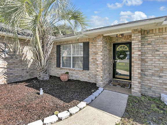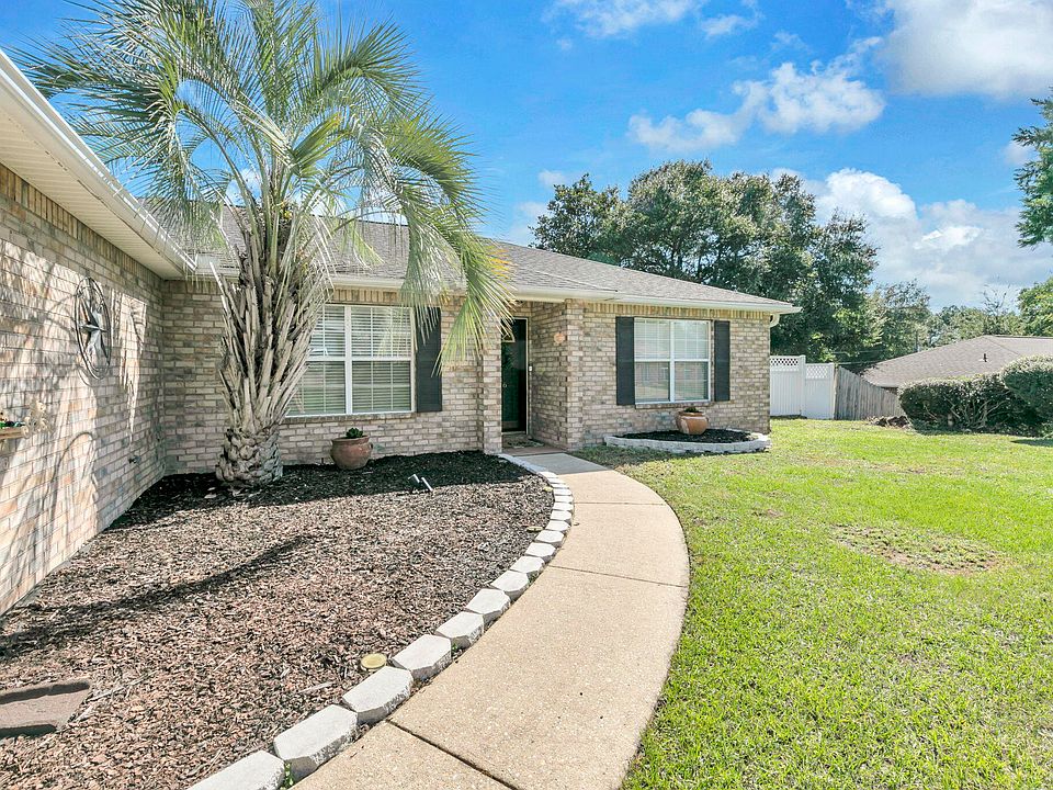 4 bedroom all brick home on the South end of Crestview! Updated flooring in living room and primary, brand new carpet in guest bedrooms. Large walk-in closet in primary and double vanity, tub/shower combo and separate water closet. Kitchen is spacious with plenty of countertop space and an island. Eat-in Kitchen offers plenty of space for a large dining room. Off of the living room is an enclosed, tiled patio. Pavered seating area in the backyard with storage shed. Plenty of flat yard space enclosed with a white vinyl privacy fence. Garden beds have been freshly mulched, new sod in the backyard. This home is ready for its new owners!Transferrable termite bond.Roof is 2017, HVAC is 2021, water heater 2011. Ducts were professionally cleaned in 2024.