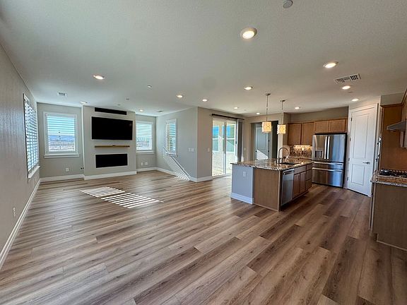 Brand new, extensively upgraded home located in the gated 55+ community of Silverado Village in Spanish Springs. This single-story residence offers 2 bedrooms, 2 bathrooms, an office/den, and a 2-car garage. The open floor plan features a spacious kitchen with granite countertops, stainless steel appliances, gas cooktop, large island, and ample cabinet space. The kitchen opens to the dining and living areas, which include a fireplace and an installed flat-screen television. 2 patios to enjoy the outdoors - one covered off the kitchen and on in the backyard with stubbed in gas hookup for your own BBQ. Throughout the home, plantation shutters add elegance and functionality. The primary suite includes a roll-in shower, and the entire home has been designed with ADA accessibility in mind. Silverado Village offers resort-style amenities including indoor and outdoor swimming pools, clubhouse, and beautifully maintained common areas. This home combines quality finishes, thoughtful upgrades, and low-maintenance living in a desirable active adult community.