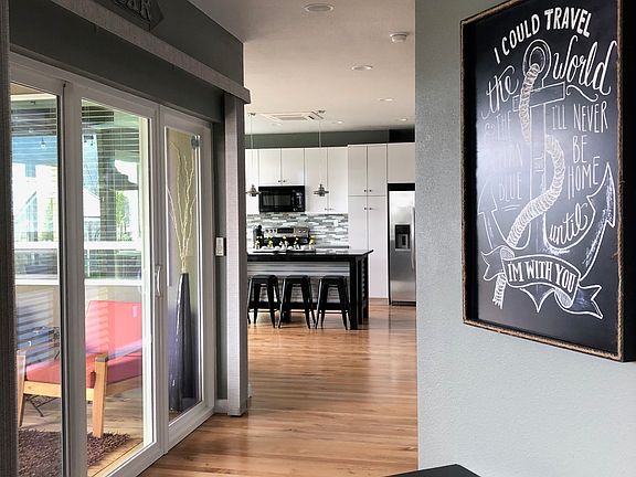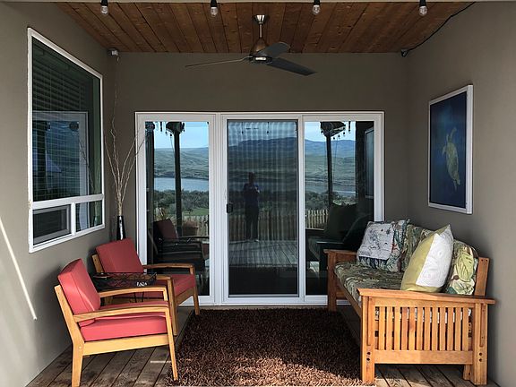 Custom single level modern home designed with plenty of windows and outdoor living spaces to enjoy the beautiful river and mountain views. It is an 1,164 s.f. home with an oversized 2 car garage. There are 9 foot ceilings throughout this 2 bedroom, 2 bath home for an open feeling. Cherry hardwood floors, large kitchen with 7 ft. X 3-1/2 ft. granite countertop eating bar island, high end cabinetry with tile backsplash and a unique built-in desk area with shelving & lighting tucked behind a custom metal barn door. Attention to quality and detail in every room. Ductless mini-split HVAC provides energy efficient heating & cooling. High end ceiling fans and lighting throughout. Four security camera’s and motion detection lighting to provide safety. The yard is fenced and has a sprinkler system. Drip irrigation waters the terraced garden along with other plants in the front and back yards. Outdoor cedar decking living space (approx.. 450 s.f.). Pergola with misters, lights, and Sunbrella cover. Custom water feature and fire pit. 12 ft circular patio provides another outdoor living option. Large 529 s.f. garage with one side 28.5 ft deep, and an 8x10.5 storage loft and additional 3.5x10.5 storage shelf. There is a 30 amp outlet for high power demand such as when you are visited by your RV friends. Plenty of room for entertaining inside and out in this unique home. A must see to appreciate. $300,000 (pre-listing price) We are willing to work with your realtor. Association documents can be found on the daoa site. Adjoining lot is also available. Most furnishings available to purchase.