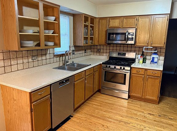 Stunning waterfront sunsets await! This spacious home offers incredible outdoor living with a massive fenced yard, two-tiered deck, and peaceful water views-perfect for entertaining or relaxing. Inside, the cozy family room with a fireplace creates a warm, inviting atmosphere. The eat-in kitchen features stainless steel appliances and a stylish backsplash. The primary suite includes a walk-in closet, cathedral ceiling, dual vanity, Jacuzzi tub, and tile-surround shower. A finished basement provides additional living or recreation space. Located just steps from the park, this home offers both comfort and convenience. Home needs TLC and is priced accordingly. Sold AS-IS. Don't miss this opportunity to customize and add value in a beautiful waterfront setting!