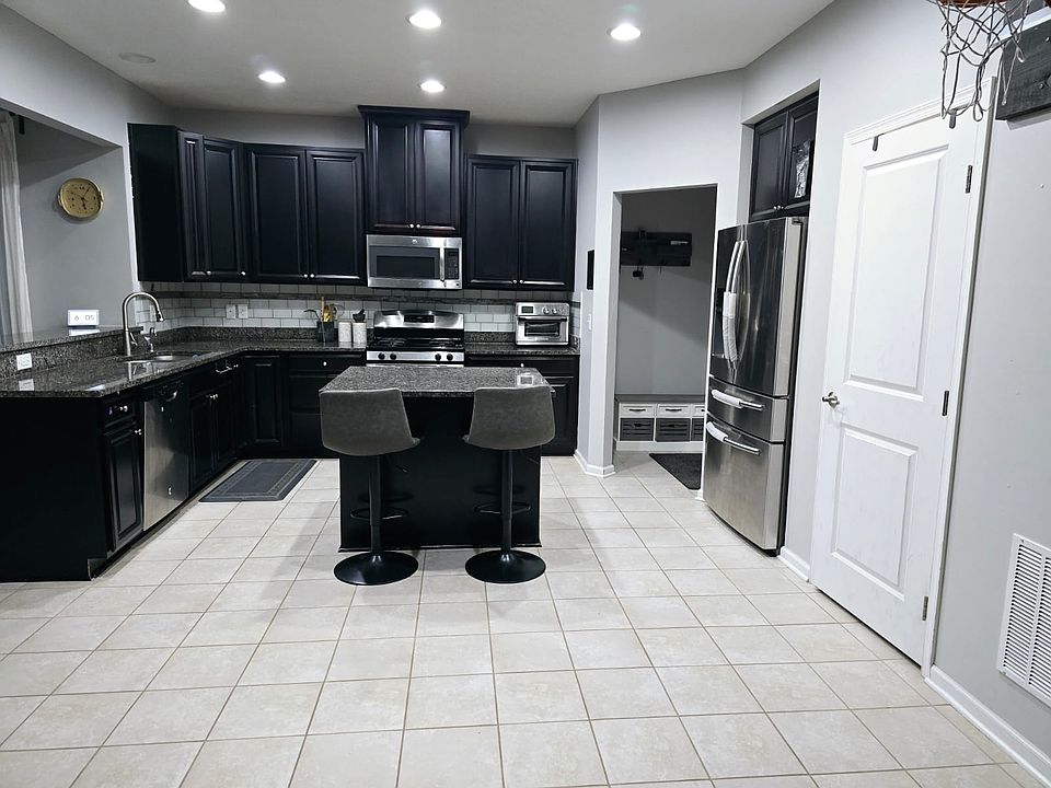 Finished basementElegant hard flooringGranite countertopsStainless steel kitchen appliances
