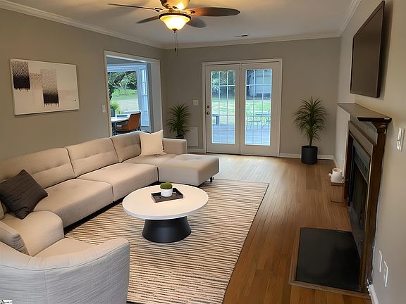 Charming 3-Bedroom Home in the Heart of Simpsonville – Discover your dream home at 406 Latrobe Drive, nestled in the sought-after Chatham Woods community of Simpsonville, South Carolina! This stunning 3-bedroom, 2.5-bathroom single-family residence offers the perfect blend of modern comfort, timeless style, and a prime location in the thriving Five Forks area. With 1,598 square feet of thoughtfully designed living space, this home is ideal for families, professionals, or anyone seeking a vibrant yet peaceful lifestyle. Key Features That Make This Home Shine include Open Floor Plan & Modern Design: Step into a bright and airy living space with beautiful hardwood floors throughout the main level. The generous dining room flows seamlessly into a gourmet kitchen featuring breakfast nook, upgraded cabinets, a smooth-top range, dishwasher. Perfect for entertaining or cozy family nights! Spacious Great Room: Unwind in the inviting great room, complete with a propane burning fireplace, ideal for creating warm memories during cooler evenings. Large windows flood the space with natural light, enhancing the open and welcoming atmosphere. Private Outdoor Oasis: Enjoy your morning coffee or evening barbecue on the expansive deck with built in fire pit, LED lighting and bench seating overlooking a wooded, fenced backyard – a private retreat perfect for relaxation or play. The lot offers ample space and backs to mature trees for added privacy. Looking for a separate shop or she shed space? No problem. Backyard has a 1-car detached garage with power. Use your imagination for this great amenity! Luxurious Master Suite: Retreat to the expansive master bedroom upstairs, boasting double closets for ample storage and a spa-like en-suite bathroom with double vanities, new walk-in shower and cathedral ceiling. No more compromising on space or comfort! Additional Bedrooms & Convenience: Two additional guest bedrooms and a full bathroom provide plenty of space for family, guests, or a home office. 1st floor laundry make daily chores a breeze. Move-In Ready Upgrades: Freshly painted throughout. HVAC updated in 2019, this home is built to last and designed for low maintenance, allowing you to focus on enjoying your new space.