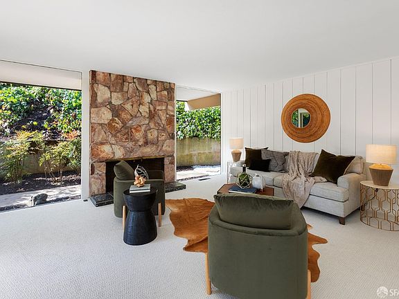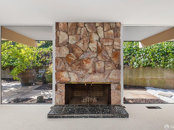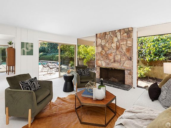 Welcome to a truly one-of-a-kind yet classic mid-century modern residence, a remarkable architectural gem from 1959, ideally located in the picturesque city of Belmont. This single-story dwelling boasts four bedrooms, three full bathrooms, and a spacious layout, set against the backdrop of a meticulously landscaped 21,000-square-foot lot. Floor-to-ceiling picture windows and sliding glass doors create effortless indoor/outdoor flow in the living and dining areas. Outside the home awaits your own private oasis, featuring a beautiful pool surrounded by lush landscaping, perfect for relaxation and entertaining. Inside, embrace the mid-century design with an indoor planter, bringing a touch of nature indoors, and a timeless stone fireplace in the living area, adding character and warmth as a centerpiece for gatherings. The primary bedroom features an en suite bathroom and a walk-in closet. Secure parking is provided with two garage spaces, and there's ample room for at least half a dozen more cars outside. This mid-century treasure is move-in ready, giving you the flexibility to enjoy its classic charm right away or tailor it to your unique style and preferences. Its well-planned layout, enduring architectural elements, and outdoor sanctuary make it an ideal place to call your own.