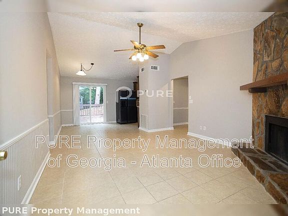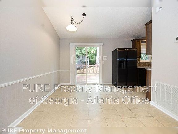 Recently renovated and redecorated, come home to the welcoming covered Front Porch, then you step into the entry and the open floor plan Living-Dining-Kitchen. The Living-Dining areas has tile floors, an open cathedral ceiling with ceiling fan. The Dining area has a newer sliding glass door that leads to the oversized wood deck, which overlooks the wooded, fenced back yard with large storage building. Updated kitchen with cherry cabinets, solid-surface counters with glass tile back splash and all appliances. Full Primary Suite with walk-in closet and recently renovated tile shower in en suite bath. Two additional large bedrooms, each with large closets and the hall bath. Large Laundry and storage room off the main living area. Generous and level wooded lot offers plenty of elbow-room. NEW blinds on all windows. Newer double driveway for open parking. Convenient to Neighborhood shopping including Wal-Mart, Hwy 92, I-575, Woodstock, Towne Lake, Kennesaw, Town Center Mall, Marietta and I-75/285. Cherokee Schools Little River Elementary, Mill Creek Middle & River Ridge High!