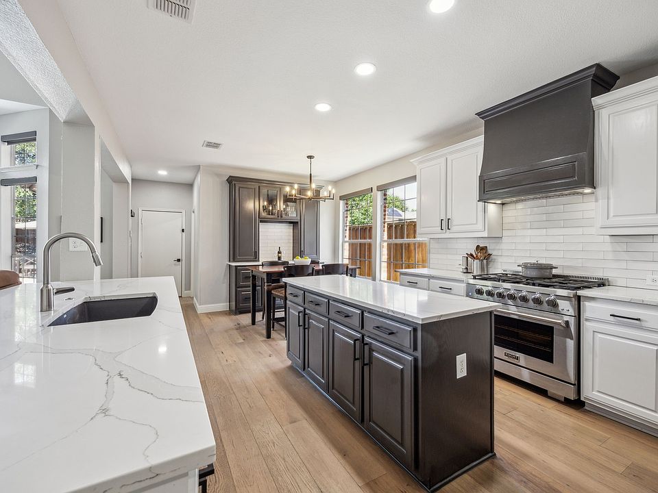 Located in highly sought-after Allen ISD, this beautifully updated home offers a spacious and functional layout ideal for modern living. Recent upgrades include a chef’s kitchen featuring a gas cooktop, quartz countertops, updated flooring, and contemporary lighting. The open floorplan seamlessly connects living, dining, and kitchen areas, perfect for entertaining. The primary suite and a guest bedroom are conveniently located on the main floor, offering flexibility and privacy. Upstairs, you'll find three additional guest bedrooms, two full bathrooms, and a large game room—all with generous closet space. A formal living room on the main floor is currently being used as a home office. Enjoy outdoor living with a private backyard featuring an 8-foot privacy fence, a sparkling pool, and a rear-entry garage for added convenience. This home blends comfort, style, and functionality in a prime location.