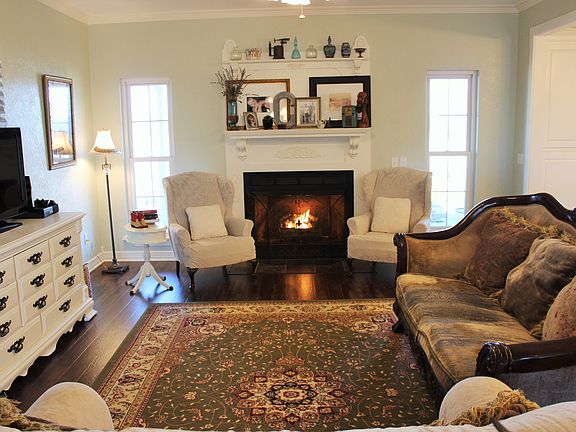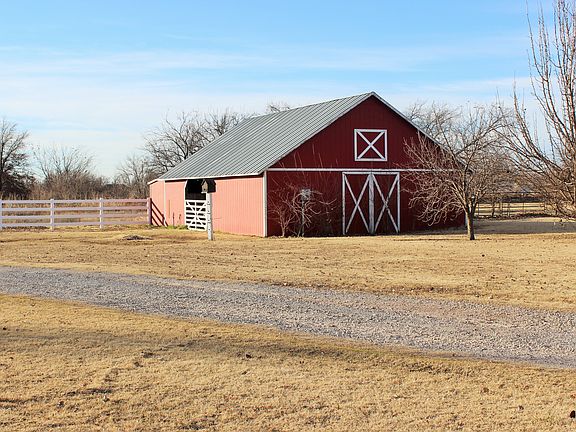 Stunning home on 5 acres w/14 pillar wrap-around porch. Wood 3 stall barn w/tack room & 20x28 attached shop w/loft, water & electric. 3 of 5 acres is fenced for horses and a 10x20 dog kennel. Orchard w/pear, apple, apricot, peach, plum trees. Grape vines & blackberries. 12 person storm shelter. A new chef's galley kitchen w/gigantic granite breakfast/sitting bar. New double convection ovens, gas range, bltin microwave & 2 crystal chandeliers. Wood plank floors, crown molding and 5" baseboards