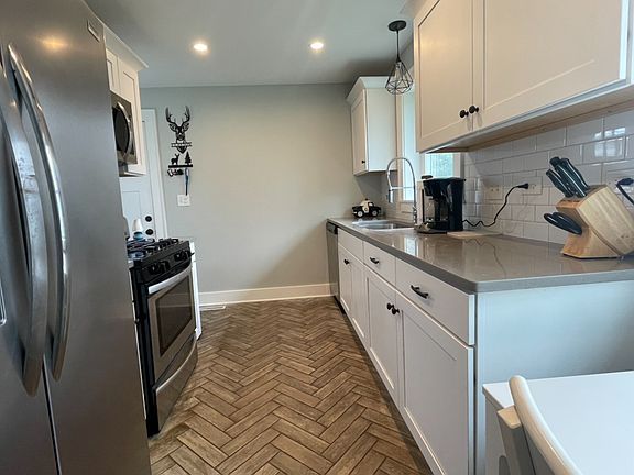 Come see this adorable ranch home with all the modern upgrades! You are sure to be impressed with the newer windows, doors, upgraded bath,Hardwood floors, custom moldings, siding and much more. The kitchen is nicely appointed with white cabinets, quartz counters, and stainless steel appliances. Full basement is spacious and ready to be finished. Cozy fenced in back yard to relax. Oversized 2 car garage with plenty of space. Make an appointment today!