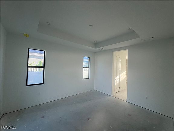 Sleek quartz countertopsEpoxy-finished garage floorSpa-like bathroomScreen enclosureSolid wood shaker cabinetsTray ceilingsStainless steel appliances
