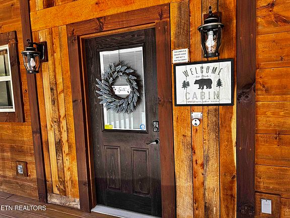 This beautiful handicap accessible cabin is not your average cabin, it has a unique style and has been very well maintained. Rarely used, and has never been an overnight rental. The materials used in this meticulous cabin makes you want to sit and enjoy the creativity! With a metal thatched roof look, hand split cedar shake shingles and rough cut lumber scattered throughout. You will also love the multicolored stained barn wood look used on several walls, thick rope trim, metal spindles, reclaimed accent pieces. Along with the artistic nature of this cabin, each bedroom has its own full bathroom with an additional vanity outside the bathroom. The master bedroom also has a soaking tub. Lots of room for everyone, a game room, two full length decks on the backside and a full length porch on the front, all with rockers. There's a nice large hot tub, an adorable swing bed on the back deck or if you want to be outside of the cabin there's a huge fire pit area with plenty of chairs! This would be a wonderful second home or it could be a very profitable rental property, capable of sleeping 10-12 people. Don't miss the opportunity to get this four year old BRAND NEW cabin! And guys the crawl space is encapsulated and well lit, so you'll not have to shy away if you need to go check on anything!