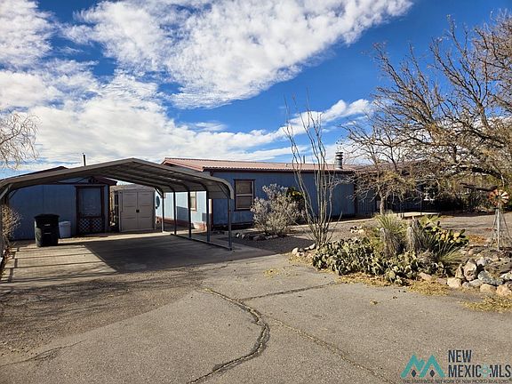 Spacious 3-Bedroom, 2-Bath Home with Exceptional Amenities Located near the hospital, shopping, schools, Hot Mineral Spas, Championship Golf, and Elephant Butte Lake, this home offers both convenience and comfort. Step into the inviting entryway and enjoy the expansive living room featuring cozy carpet and a wood-burning fireplace, perfect for relaxing evenings. The dining area boasts stylish laminate flooring and opens to a covered patio deck, ideal for outdoor gatherings. Adjacent to the dining area, the kitchen provides a functional layout with a view of the backyard and easy access to the laundry room. The private master bedroom is a true retreat with plush carpeting, a walk-in closet, and a luxurious en-suite bathroom complete with double sinks. The two additional bedrooms are thoughtfully placed on the opposite side of the home, offering privacy and sharing a well-appointed guest bathroom. Outside, the property shines with ample space, including a large 12x16 workshop and a 5x5 shed with a 7X7 Morgan building for added storage or hobby use. The generous lot offers plenty of room to enjoy outdoor activities. This home is a must-see—schedule your showing today!