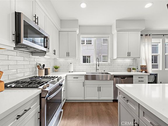 This is the turn-key home you have been waiting for! Situated in a charming community with mature landscaping, this beautifully upgraded townhome is just around the corner from the adorable shops and eateries of Old Town Tustin. Built in 2020, this home is practically new. Just some of the upgrades include: wide plank, laminate flooring; quartz countertops and modern tile throughout the home; stainless steel kitchen sink; GE appliances; dual zone air conditioning; plantation shutters and window treatments; low-ply carpet; additional garage storage and more! This townhome is perfectly situated in the community with no other units directly in front of you. Instead, you have a wide open view of the community pool and lush greenery. This home won't last!