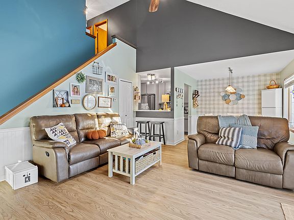Discover this charming 3-bedroom, 2-bath house located in the quiet town of Kouts. The main floor features a spacious primary bedroom, offering privacy and comfort. The updated kitchen boasts hard surface counters, perfect for modern living and entertaining. Upstairs, you'll find two generously sized bedrooms and a full bathroom. The attached garage provides convenient parking and additional storage. Enjoy the serene surroundings from the back porch, complete with a hot tub for relaxing evenings. Close to town and all that Kouts has to offer, this home combines comfort, updates, and convenience in an ideal location.
