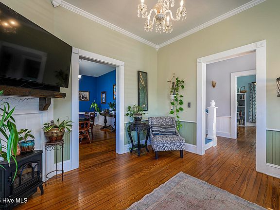 Just blocks from the Neuse River and the heart of downtown New Bern, the McDaniel House (circa 1900) captures the timeless beauty and soul of the city's celebrated historic district. Perfectly positioned among tree-lined streets and centuries-old architecture, this stately home offers an unmatched blend of preserved character and modern livability. A brick driveway leads to welcoming off-street parking and a classic rocking-chair front porch — the perfect place to enjoy the neighborhood's charm. Enter inside to find a gracious foyer, original hardwood floors, and rooms that flow effortlessly for both entertaining and everyday comfort. The main level features two spacious living areas, a formal dining room, and a first-floor bedroom with a nearby full bath. At the heart of the home, the large kitchen is both functional and full of personality, with a farmhouse sink, breakfast nook, coffee bar, and access to a fenced backyard complete with a deck and patio. A bar area and walk-in butler's pantry connect seamlessly to the dining room, ideal for hosting gatherings. Upstairs, the primary bedroom includes a cozy keeping room that could serve as an office, reading nook, or dressing room. Two additional bedrooms, a walk-in closet, and a full bath complete the second floor. With its classic proportions, original details, and unbeatable location near New Bern's waterfront, restaurants, boutiques, and galleries — this is more than a home; it's a piece of the city's living history. Contact us today for your private tour! PID 8-003-3002 is included in the sale.
