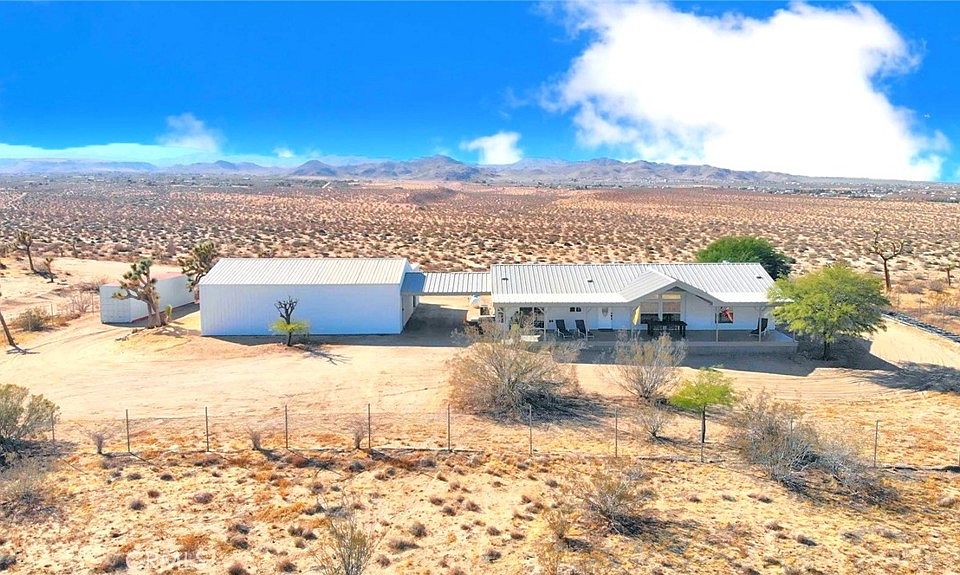 Welcome to your desert paradise! This unique, one-of-a-kind, fully customized manufactured home on a permanent foundation offers a 3-bedroom, 2-bath, 1,704 sq ft home with stunning panoramic views of Big Bear and Goat Mountain. This unique property is a dream come true for ATV, Side by Side, off road and outdoor enthusiasts or anyone who craves a desert lifestyle. Customized with a 332 ft. runway built for a STOL type plane. Situated on a sprawling 5-acre lot, with 1 acre securely fenced. BLM borders the back of the property with trails going to King of The Hammers and Big Bear.