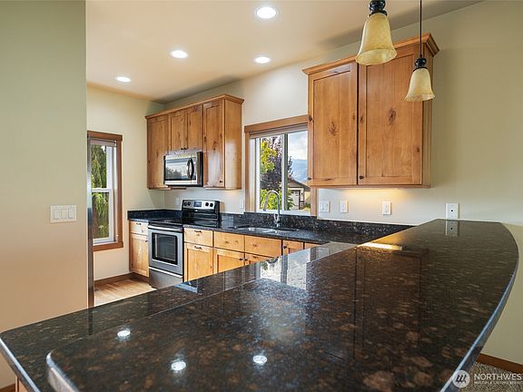 Beautifully designed 3 bed, 1.75 bath home with 1,605 sq ft of comfort and style in the heart of Manson. Hardwood floors lead you to the gourmet kitchen featuring custom cabinets, granite countertops, and stainless steel appliances. The great room with riverwalk fireplace and sliders to a covered patio creates seamless indoor-outdoor living. The primary suite offers a spacious walk-in shower, dual sinks, granite counters, and a large walk-in closet. Enjoy privacy and views—this homesite borders a peaceful park on two sides and is just a short stroll to the neighborhood pool and vibrant downtown Manson.