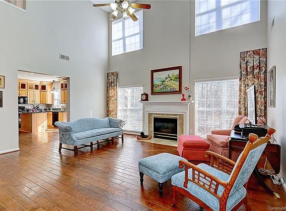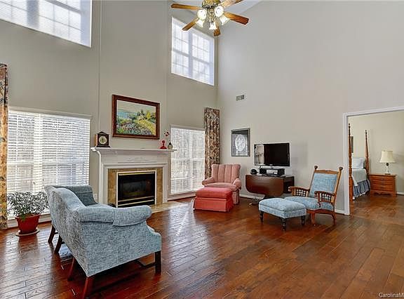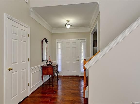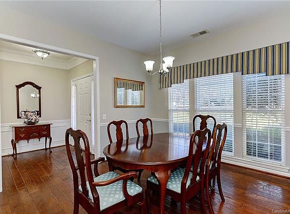 Handsome brick front transitional shines with beautiful wide plank hardwood floors, soaring 2-story great room, inviting eat-in kitchen and bonus/media room! Main level master suite boasts a tiled bath with garden tub, separate shower and walk-in closet. Spacious guest bedrooms all have lighted ceiling fans and plenty of closet space. A relaxing deck overlooks the well landscaped back yard with mature shade trees. Take a stroll along the green way to Squirrel Lake Park or Matthews Elementary! Minutes to shopping & dining in historic downtown Matthews!