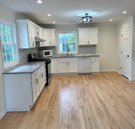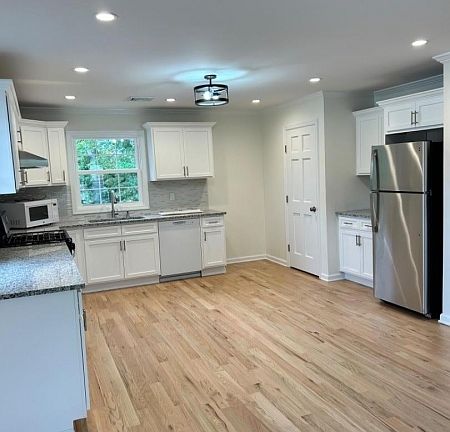 A stylishly completely renovated 2-bedroom apartment on the second floor of a 2 Family house featuring updated and modernized living space. The renovations include new white oak flooring, fresh paint, and modern fixtures. The kitchen and bathroom have been upgraded with new S S appliances, white cabinets, and granite countertops. Additionally, the renovation have improved energy efficiency with new windows and insulation. Overall, it's a comfortable and appealing living space. Convenient to NYC transportation, Central Jersey Highways and Airport.