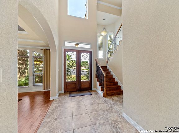This is the life! There will be no need to leave home in this stunning McNair home boasting sky high ceilings, an open and airy floorplan, tons of natural light, solid flooring (wood and tile) throughout the home, plantation shutters, floor to ceiling stone fireplace in living room, a kitchen that is a chefs joy with granite countertops and cabinets galore, gas cooking and stainless steel appliances, a stunning first floor master retreat with a wall of windows and en-suite spa like master bath, 4 spacious secondary bedrooms, dedicated office space, a Texas sized gameroom and so much storage space, you can use the 3 car garage for your cars. This stylish home is situated on your own private half acre oasis with living space extending onto your secluded outdoor terrace overlooking the sparkling, resort style pool with hot tub, water features and sundeck, leaving plenty of space in the backyard for gardening, playing and entertaining!