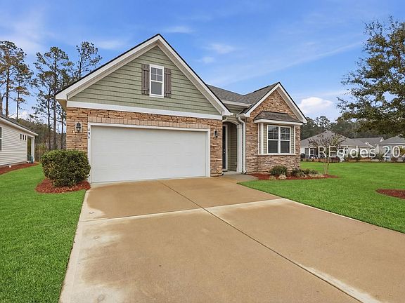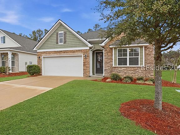 Welcome home to this beautifully maintained 4-bedroom, 2-full-bath residence offering one-level, maintenance-free living in the gated Reserve section of the highly desirable Cypress Ridge community. Attractive curb appeal welcomes you with a stone-accented front exterior. Lawn care, pest control, termite bond, and power washing are all included for easy living. Situated on a low-traffic street, this premium lot backs to serene wooded views with common ground on one side, providing added privacy and space from neighboring homes. The inviting foyer opens to luxury vinyl plank flooring throughout-no carpet anywhere-and an open-concept layout ideal for entertaining. Upgraded paint and a neutral color palette enhance the light and airy feel.The kitchen features trending white cabinetry, granite countertops, subway tile backsplash, and a gas range, and a large pantry. The owner's suite offers peaceful wooded views and a spacious en-suite bath with dual vanities, step-in shower, and a large walk-in closet with custom shelving. French doors with custom blinds lead to the outdoor living space, where you'll enjoy morning coffee or evening relaxation on the screened porch with floor-to-ceiling privacy curtains.Additional highlights include a laundry room, finished garage, attic storage, ceiling fans, and an irrigation system. Residents enjoy Cypress Ridge's resort-style amenities where veryday feels like you are on vacation! Prime location near New Riverside Barn Park, shopping, dining, and the upcoming New Riverside Linear Trail, with easy access to Old Town Bluffton, Hilton Head Island beaches, Beaufort, and Savannah.