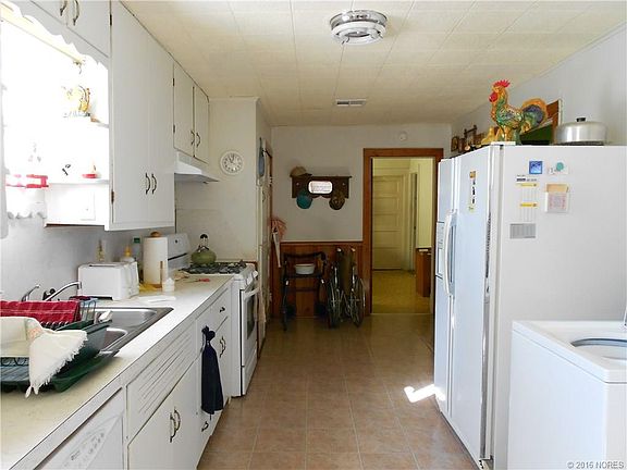 Big bright farm type kitchen with space for breakfast table, large living room which could be living/dining split if desired. 3 bed, 2 bath. Fenced yard, 2 car carport, front porch, storm cellar, and a nice large lot. Older home with large rooms.