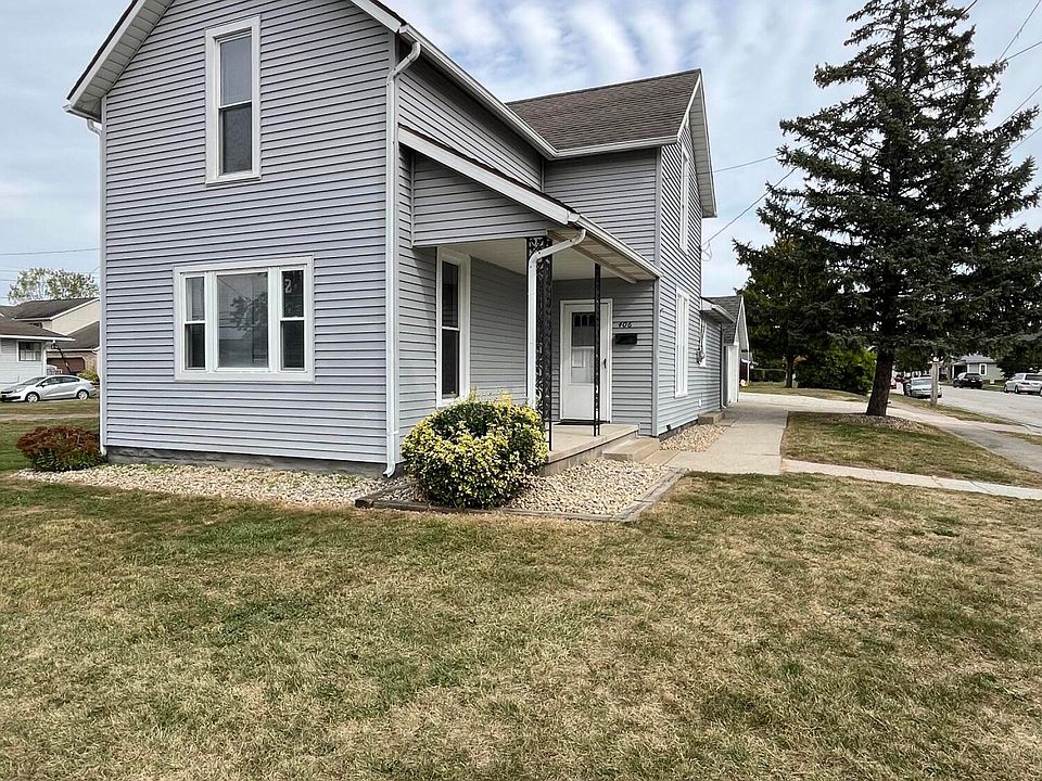 upon new carpet and flooring. Fresh paint also lines the walls of this large corner lot, which awaits its new owners. There is a bedroom on the main floor. Laundry also located on the main floor with its on space. Outside, you will find a one car, detached garage that you could either use for storage, or even make your own private man cave. Also, you will find an additional two car detached garage for even more storage and space. There is a large wooden deck attached to the home, ready for you to host and entertain. Also, on the north side of the home, you will find a large lot to use for either a garden or for the kids to play. Don't wait, this one won't last long! Grab your favorite agent and get rolling!