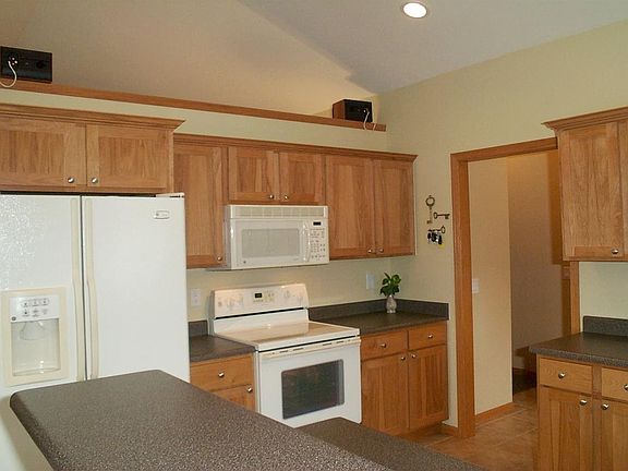 Sun-filled 1762 sq/ft 3+ bdrm ranch home in walking distance to Prairie Elementary school & park! Walk in & notice the lrg great rm w/stone frplc & cathedral ceiling that extends into the fully applianced ceramic kitchen w/pantry, breakfast bar & big dinette w/access to the deck overlooking the lrg flat Southern lot! 1st flr laundry off the 3 car garage. Spacious master suite w/private whirlpool bath, double vanity & walk-in closet! Big exposed basement - double your sq/ft for peanuts! 9ft clg & bath rough.