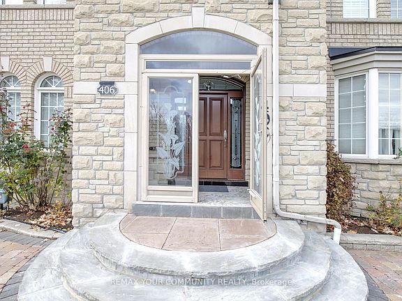 'Golfside Elegance'. Spectacular 4-Bed, 5-Bath family home on a premium corner lot next to golf and green space! Welcome to 406 Staines Rd, a beautifully updated and meticulously maintained residence by the original owners, showcasing exceptional designer finishes and thoughtful upgrades throughout. Enjoy 9-ft ceilings on the main level, elegant crown moulding and trims, hardwood floors on the main and second levels, upgraded light fixtures, a carpet-free interior, and bright, flowing living spaces ideal for everyday living and entertaining. The heart of the home features a gourmet kitchen with quartz countertops, custom cabinetry with glass showcase cabinets, stainless steel appliances, centre island, and an eat-in area open to the family room, highlighted by a gas fireplace with custom millwork feature wall. Separate formal living and dining rooms, each with bay windows, offer timeless elegance and abundant natural light. Upstairs, 4 generous bedrooms and 3 fully upgraded bathrooms await, including a luxurious custom dressing room(converted from the original 5th bedroom) with built-in cabinetry. The finished basement is perfect for entertaining, offering an open-concept recreation area, additional living space, wet bar, and a 3-pc bathroom. Perfectly situated on a sidewalk-free, landscaped corner lot with a 2-car garage, large deck, enclosed porch, garden shed, water softener. Numerous premium upgrades include a newer roof, upgraded security system, doors, lighting, and more. Steps to Cedar Brae Golf Club, with easy access to nearby parks, transit, shopping, schools, and community amenities. A rare opportunity combining style, space, and an unbeatable location-an impressive home in a vibrant community.