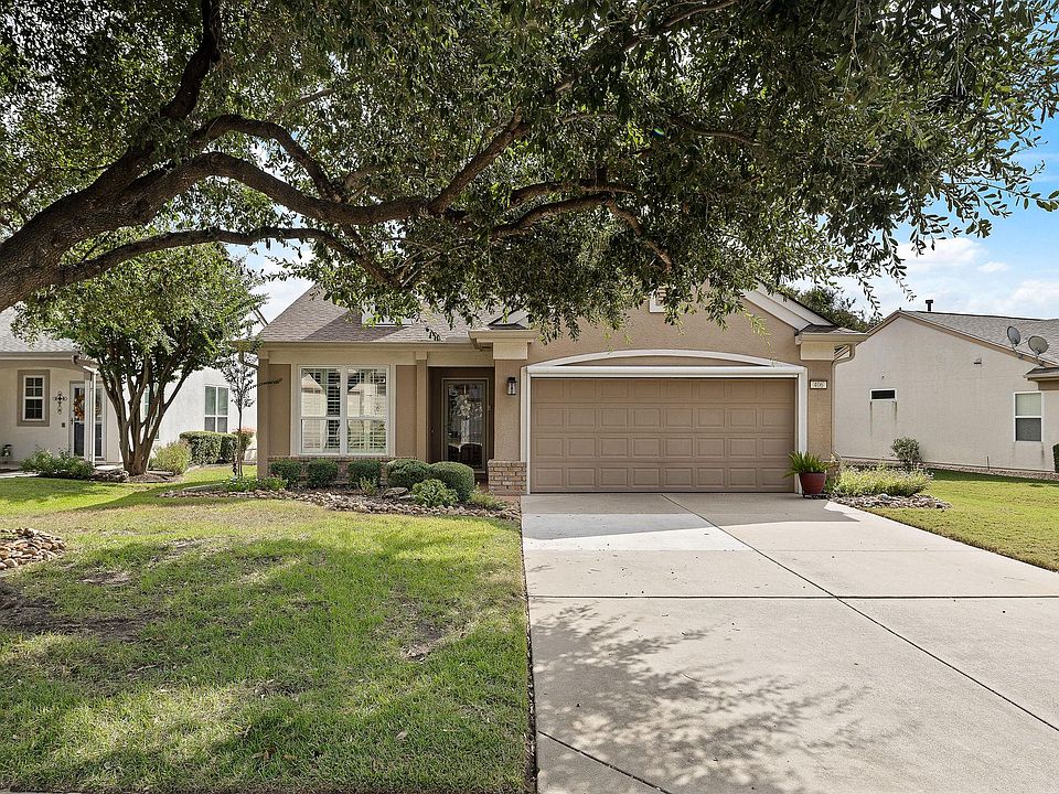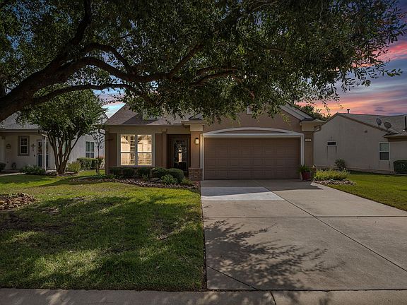 Welcome to 406 Sundance, an impeccably maintained and highly upgraded home nestled in the heart of Sun City Texas, Georgetown’s premier active adult community. This beautifully designed three-bedroom, two-bath residence offers effortless single-story living with refined finishes and open, inviting spaces. This home has been so very loved and cared for! Step inside to discover wood flooring, a calming color palette and a light-filled living room that flows seamlessly into a convenient cooking space with black appliances, CORIAN countertops and a cozy dining space. The spacious primary suite includes a generous walk-in closet. Two additional bedrooms provide flexibility for guests, a home office, or a creative work space. Enjoy morning coffee or evening relaxation on the covered back patio, surrounded by a beautifully landscaped, low-maintenance yard. With thoughtful upgrades throughout — this home blends style, comfort, and function in every detail.