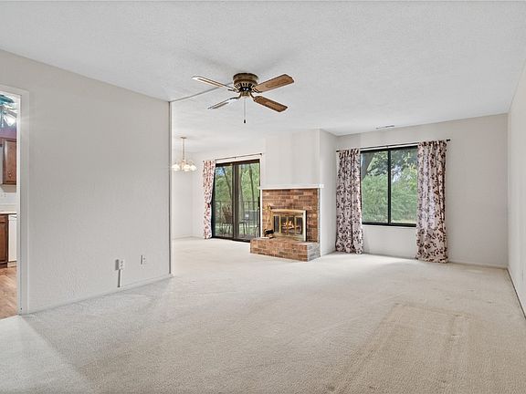 This zero entry condo offers a park-like setting while maintaining close proximity to city amenities. Enjoy the convenience of single-level living on the main floor, with an in-unit laundry area that includes a washer, dryer, and soaking sink. Recent updates: newer flooring in the hall and both bathrooms, as well as vinyl windows. A $1500 carpet allowance is provided, along with a 1-year home warranty. The residence features an excellent flow, including a spacious living room, dining area, and eat-in kitchen. Enjoy the wood-burning fireplace or consider converting it to natural gas. A slider door provides access to the patio, offering wooded views and opportunities to observe wildlife. A community patio is also available for relaxing with friends and neighbors. The primary bedroom includes an en-suite bathroom. There’s a spacious second bedroom for family, guests or use as an office or studio. The property includes two detached garages (units #9 & #20) and a walking path. A storage closet is located in the entrance hall. Water, garbage, and sewer services, along with lawncare, snow removal and exterior insurance and exterior/common area maintenance are covered by HOA dues. The location provides convenient access to shopping, dining, and various services, and is within walking distance of Collins Aerospace. One cat is permitted and rentals are not allowed. This HOA does not allow smoking in the units, garages or common areas.