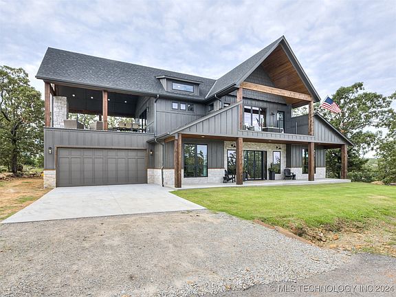 Beautiful lake views from this gorgeous new construction home in the desirable Three Nations Estates WITH BOAT SLIP INCLUDED. Three nations is a gated community filled with beautiful estates offering some of the clearest water and best fishing on Lake Eufaula at a hard to beat location within a 13 minute drive to town of Eufaula, 7 min to #9 marina, 10 minutes to Carlton Landing and easily accessible to everything by water. This home is an entertainers dream and features an impressive 30' cathedral living and 520 sq ft cathedral upper terrace that overlooks the lake and offers a wood burning fireplace with rock exterior. Private backyard overlooking 600+ wooded/mountain like acres. Downstairs you will find owners suite offering a soaker tub, walk-in shower, and private glass sliding doors to backyard. There are 2 additional bedrooms downstairs both offering private en-suites and closets. A formal dining, stunning butlers pantry, mudroom, powder bath, under the stairs dog/reading nook, 2 car garage, a chefs kitchen featuring a 48” gas range, 5' built in fridge/freezer, quartz countertops & backsplash, 9’ kitchen island seating 6+, coffee station and more. Upstairs you will find a recreational room with vaulted ceilings, granite bar seating, ice maker, beverage cooler and custom cabinetry with lake views! A large bunk room, full bathroom, a large loft area with built-ins and two outdoor patios. The home offers spray foam insulation, fiber-glass windows, 10' patio slider, private hot tub patio, iRobot docking station and drying rack are just a few of the “extras” in the home. Included boat slip is 10X27. Approx. 1548 sqft of outdoor living space. Internet already active in the home and fiber optic coming soon! This home provides not only great summer vibes but also gorgeous fall views making it truly a year round dream home. You really have to see this one in person to appreciate.