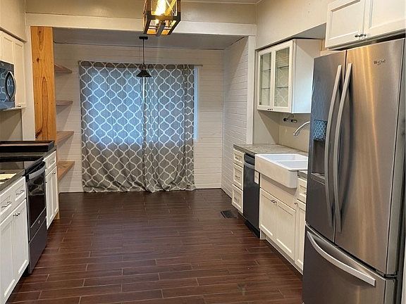 Partially fenced yardSpacious homeOff-street parkingUpdated kitchenVinyl windows