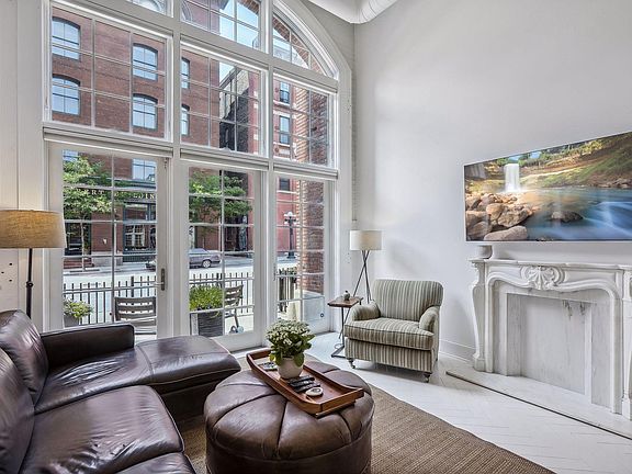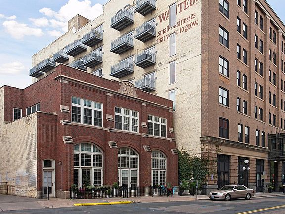 Exceptional loft in the renowned Firehouse conversion at the River Park Lofts. Situated in the sought-after Lowertown neighborhood of downtown Saint Paul, the space is flooded with natural sunlight and exudes meticulous attention to detail. With its soaring 16-foot ceilings and expansive "wall of windows," this interior is truly captivating. The herringbone patterned, painted maple hardwood flooring, along with the built-in storage, add to the charm and functionality of the space. The kitchen showcases a sleek marble-wrapped island, custom cabinetry, a Sub-Zero refrigerator and freezer, as well as a Wolf range. Property's exterior offers a private entrance and a cozy patio area for that perfect café-style experience. Heated + owned tandem garage space included. River Park Lofts building offers its residents safety & security, along with its luxury features, including concrete floors, exposed brick + wood beams throughout, an exercise room, party/community room, & entry into skyway.