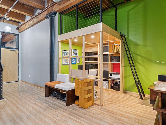 Cool space in historic River Park Lofts (RPL) offers high ceilings, exposed brick and beams, and great views of Mears Park. Current owners spent over $75,000 to update with new office (and code-compliant loft above), storage, and great spaces for grandkids. Elevating the bedroom added more than 150 square feet (not reflected in listing). Below is a massive, well-lit space for storage, kid-friendly recreation and/or grown-up getaway. Completely renovated bathroom has industrial-mod vibe, with spacious closet and new washer/dryer. Kitchen also was renovated; all stainless-steel appliances, plus complementary hutch/storage pieces, are included in sale. Contemporary new fan and industrial-grade “cloud” acoustical treatments were added to soaring ceilings. Large south-facing windows spread ample natural light to brighten the space and quench the succulents on purpose-built window platforms. RPL, a prized Lowertown property, is kept immaculately clean and well maintained, with on-site manager weekdays and responsive emergency services available 24/7. HOA is financially sound, with consistently stellar board members. Highly competitive HOA fees cover virtually every utility and amenity – including generous cable and Internet package – except for electrical (approx. $25-$35/month). Building boasts a large community room, rooftop deck with grill, and workout room. Community hosts many social and cultural events year-round. Unit #207 includes: one OWNED heated underground parking spot and a separate enclosed storage locker – both with their own property tax IDs. RPL connects directly to St. Paul Skyway, with wheelchair access to restaurants, library, Union Station and numerous sports and entertainment venues. Residents can walk just a few blocks to St. Paul Saints baseball stadium, phenomenal Farmers’ Market, Mississippi River and miles upon miles of walking trails and parks.
