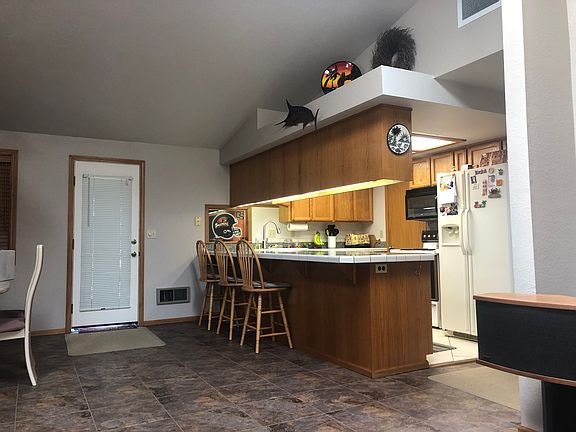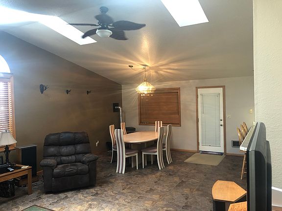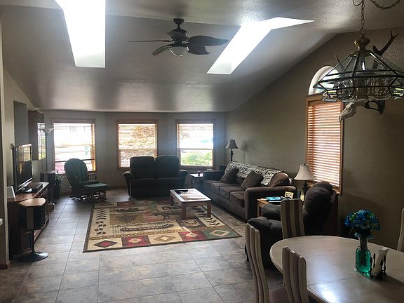 Spacious open floor plan with vaulted ceilings and skylights. New vinyl tile flooring through out main living area, ceramic tile in kitchen, sun room and bathrooms. Oak kitchen cabinets with granite countertops plus a pantry. Large master suite with double closets and a double vanity. Abundant storage throughout the home with additional storage buildings outside. RV Parking 90' deep with hookups. Property backs up to a greenbelt.