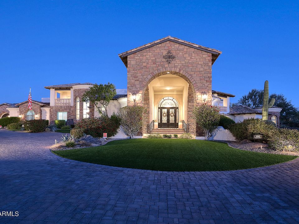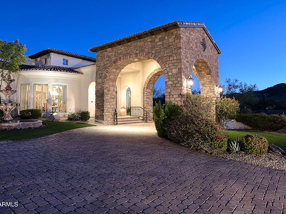 2 car garage in Casita w/Golf Simulato *2 covered patio decks*Ceiling details include groin vaults and modern designs*Cantera stone hand-carved columns at entry and cantera fireplace*Enter home to a great room, kitchen, 2 offices, 1/2 bath, master bed/bath, Laundry room, Formal Dining, & 4-car garage without any steps! Amazing storage rooms to die for!*Master suite has sitting area and fire place*Master bath showcases marble counters, his/her sinks, exceptional jetted tub w/mood lights*Steam shower w/body jets, & numerous other fixtures*Two large walk-in closets for his/her w/additional massive storage room or SAFE ROOM!*Drop down 7 stairs on Opposite side of home to 3 naturally cooled bedrooms all w/huge walk-in closets*2 full baths (one with jetted tub) and an additional bedroom currently used for a 3rd office w/built in cabinetry*Amazing game room/media room w/fireplace to take up a game of pool or watch your favorite movie all at the same time!*Wet bar has GE Monogram Wine refrigerator*Upstairs 5th En-suite bedroom also offers 2 private balconies for the prince or princess with expansive city light views to west or Mtn./golf course views to the east!*Off great room,follow the covered breezeway to the fully contained 1 bedroom/bath Gen X/Mother-in-law or guest house*Full kitchenette,w/microwave/frig/Ice Maker & full size laundry, Exercise Room + 4 person sauna!*Finish off this area with a 2-car garage or keep it as an indoor golf driving range (or batting cage) currently used by a professional golfer*This is a MUST SEE as there are too many amenities to mention*Meticulously maintained* must see HOME UPDATES LIST in Documents tab. Las Sendas is a premier master planned community offering healthy lifestyle opportunities, multi-generational activities and superior services to homeowners in a comfortable, beautifully-maintained desert environment with scenic mountain and valley views.