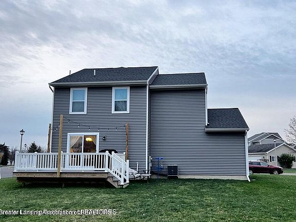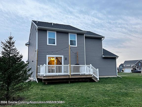 Move-in ready, stunning 2020 Mayberry Home in the desirable Falcon Point subdivision! Enjoy the peace of mind with a newer built home featuring upgraded finishes and modern design! This beautiful 3-bedroom, 2.5-bathroom home boasts a stunning kitchen with soft close cabinets and eat-in dining area. A fully finished lower level with egress window, adds the perfect additional living space. Spacious primary suite complete with a walk-in closet and ensuite bathroom. Convenient 2nd-floor laundry room to save time and steps. A Cozy 2nd floor nook, Ideal for a home office or quiet study area. Of course you need to Imagine yourself relaxing on the spacious composite deck of your brand new home, conveniently located on a corner lot. A mixture of condominiums and single-family homes adjacent to par 3 Falcon Golf Course, N. of Hawk Nest subdivision. A quick trip down Chandler Rd. to shopping, restaurants, E. Lansing & MSU!