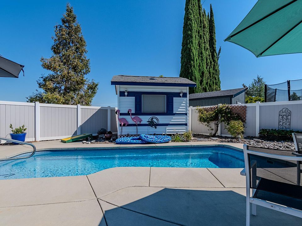 3% assumable loan! Beautifully updated and remodeled 3/2 home. Large kitchen and adjacent dining room. Indoor laundry (w/d included) walk-in pantry and huge cabinet pantry. Ref, range dishwasher, micro included. Pull outs in bottom cabinets and pantry. Step down lv. room. Plantation shutters. Primary bedroom opens to backyard heated pool (equipment included). Truly an entertaining backyard. Deck, gazebo, pool house storage, Catio. This home is gorgeous! One of the owners is a licensed broker in the state of Oregon