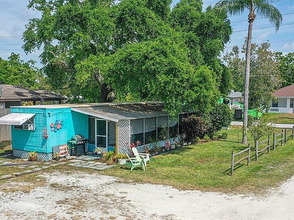 Yes, you read that right--Listed under 200K. Here is your opportunity to own a non-deed restricted property in a quiet, quaint part of central Sarasota, just 6.6 miles to Siesta Key beach, 5.4 miles to Whole Foods in downtown Sarasota, and 3.5 miles to I-75 Bee Ridge exit. Only .5 miles away is the intersection of Beneva Rd & Bee Ridge Rd, where you'll find a Publix, Walmart, Walgreens, Wells Fargo, Starbucks, AutoZone and HomeGoods. Yes, a fantastic, convenient location, and yet how unbelievably quiet it is here. A commercial grade PTO rubber membrane roof was installed in 2019. The electric panel was replaced in 2015. The refrigerator, range and water heater are 8 years old. When purchased in 1999 the owner stripped the interior and installed new insulation, new interior drywall, new windows, new PVC plumbing; and most wiring was replaced as well. The main bathroom renovation included a walk-in shower, new large sink vanity and tile flooring. A split floorplan with a bedroom anchoring each end of the home, the second bedroom has its own darling en-suite half bath. A generous open floor plan of the kitchen/ dining/ living room extends over 25 ft though the central area of the home. The second stand alone structure has power, a/c & cable . The Bonus is that this could be an income-producing property. Consult with several pre-fab home builders to replace the existing home or build a Tiny House. There is a capped well on the property, There is an onsite septic system which was drained & serviced in 2022, the average water bill is only $28/month. Affordable Independence!