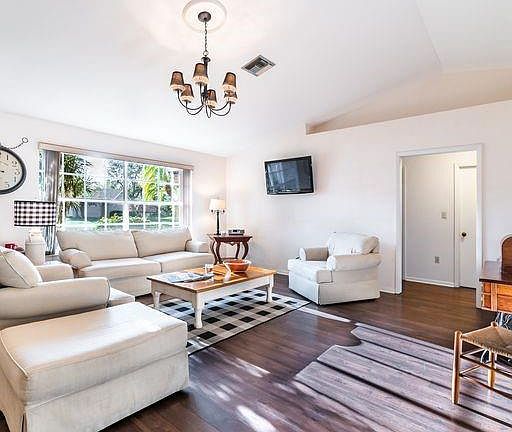 Located in Naples best kept secret, Quail Hollow, 4060 Vine Lane is a corner lot on a Cul de sac. This ranch style home features an owner's suite with private bath. On the opposite side of the home are the two guest bedrooms and second bath which allows both the owner and guests an added sense of privacy. The vaulted ceilings in the great room and adjoining dining area add to the spaciousness of this home. The kitchen has recently been remodeled and features a farmhouse sink, new stainless-steel appliances and quartz countertops. Enjoy your morning coffee on the enclosed lanai and cookouts on the oversized, outdoor deck. Hurry home soon!