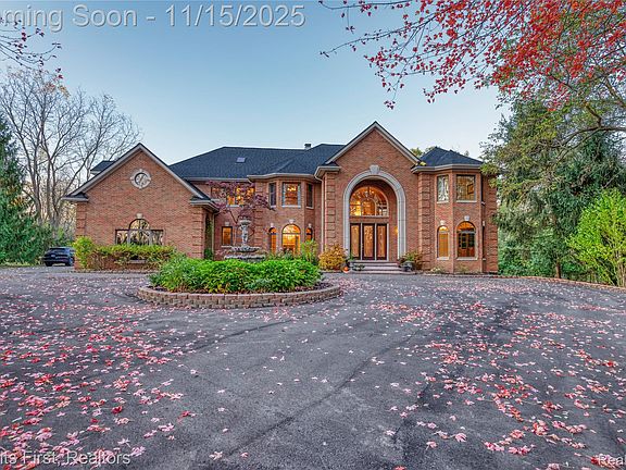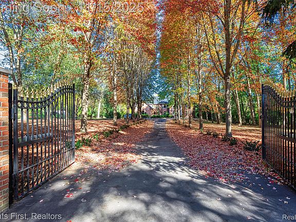 Experience refined living in this gated estate across from Meadowbrook Country Club. Designed by GAV & Associates and built by master builder Sal Sigliano, this all-brick residence offers nearly 5,900 sq. ft. of elegant living space on a private 1.86-acre lot (225 ft wide x 360 ft deep), framed by a stately maple-tree tunnel and a newly paved asphalt driveway (2024). A remote-controlled gate opens to a long drive that leads to a circular turnaround and park-like grounds. Inside, a grand two-story foyer introduces an open floor plan with soaring ceilings, solid oak interior doors, and Hurd windows throughout. The home features 7 bedrooms, 5 full baths, and 2 half baths, including a spacious primary suite with a Jacuzzi tub and massive walk-in closets. Enjoy dual and double-sided fireplaces, tray/step ceilings in the living, family, and primary rooms, and 4 bay windows offering abundant natural light. The gourmet kitchen showcases custom Dura-Supreme cabinetry, Amazon Blue granite countertops, and a vented exhaust system. The finished lower level adds a theater room, full kitchenette, bedroom, full bath, new carpet, and a walk-up entry through the garage. Additional highlights include a 4.5-car garage with stairway access to the basement, new roof (2024), new HVAC systems (2023 & 2024), wood flooring installed in 2019, large patio overlooking a private backyard, and custom window treatments. Located in the Novi School District, with bus service to Catholic Central and St. Catherine of Siena high schools. Close to shopping, restaurants, movie theaters, Costco, Trader Joe’s, and major highways. No HOA fees, well and septic system (with optional city water connection). Mineral rights included — oil detected in prior field study. Surrounded by multi-million dollar custom homes! Bring your own style and design to add to this majestic masterpiece. Immediate occupancy!