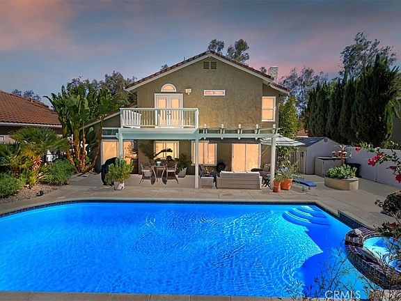Welcome to this beautifully maintained home ideally situated on a quiet cul-de-sac in one of Murrieta’s most desirable neighborhoods. Set on a spacious 10,109 sq ft lot with no neighbors in front, the home enjoys peaceful views of the open land across the street—creating a wonderful sense of openness and privacy. Offering 4 bedrooms, 2.5 bathrooms, and a 3-car garage with a workshop area, attic storage, and included washer and dryer, this property combines comfort and function throughout. Step inside to a bright and inviting floorplan with high ceilings in the living room, creating an airy, open feel from the moment you enter. The family room features a beautiful stacked-stone fireplace, neutral finishes, and luxury plank vinyl flooring that flows throughout much of the home. The kitchen is open and cheerful with plenty of cabinet and counter space, stainless steel LG appliances—including the refrigerator—and clear views of the backyard. All plumbing and windows in the home have been replaced, adding value, comfort, and energy efficiency. Upstairs, one of the secondary bedrooms features French doors that open to a private balcony—perfect for a home office or a relaxing retreat. The spacious primary suite offers a walk-in closet, remodeled shower, and tasteful finishes, while the secondary bathroom has also been updated for a clean, modern look. Step outside to a backyard designed for relaxation and enjoyment. The sparkling custom pool and spa take center stage, surrounded by extensive hardscape, mature landscaping, and colorful plants that create a peaceful setting. There’s also a built-in firepit perfect for cozy evenings, newer fencing, a newer pool heater, Pentair pool equipment, and rain gutters. The large side yard offers valuable space for extra vehicles, a boat, or possibly a small RV, and raised planter beds provide the perfect place for growing your own vegetables. Large outdoor shed stay with the home, offering extra storage for tools or hobbies. Centrally located close to shops, restaurants, parks, and highly rated Murrieta schools, with easy access to both the 15 and 215 freeways, this home offers a rare blend of space, comfort, and location—all with very low taxes and no HOA. Inviting and well cared for, it’s the kind of home that simply feels good to come back to.