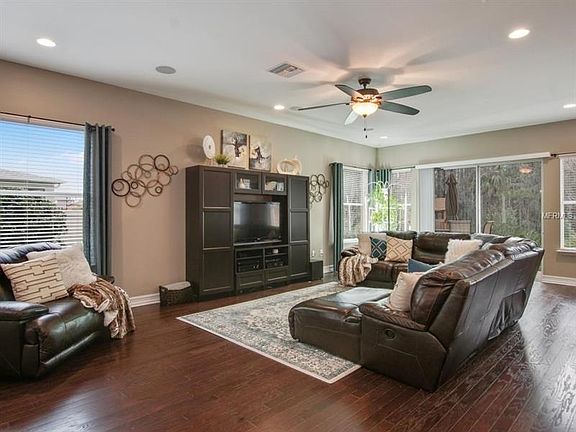Estanciaâ¦True Florida living at its best! Phenomenal home in the exclusive community of âSiennaâ in Estancia. This European Cottage style home offers 5/4 + office + Bonus, 3,852 square foot of living area. Fall in love w/ a very open 29âx29â great room w/ hardwood flooring, lots of sliding doors allowing for an abundance of natural light, a 3-car garage on a conservation lot. This like-new energy efficient home, you will enjoy a gourmet kitchen featuring Whirlpool stainless steel oven, walk-in pantry, gas cook-top, gleaming granite countertops, stylish stone backsplash, and rich Espresso cabinets. The expansive center island, breakfast bar, large casual dining & large dining room compliments the light and airy open concept. The lovely ownerâs retreat boasts a coffered ceiling & adjacent sitting room. The master bath features a relaxing garden tub, dual vanities & 2 large walk-in-closets. There is a guest suite downstairs w/ an adjoining bath. Relax & enjoy lush nature views on your covered lanai, overlooking your incredible fenced backyard w/ a fantastic play-set & wooded views! This home has it all & is a must see! Bonus room can easily be transformed into a 6th bedroom. Estancia is Wesley Chapel's premier community located just north of the Wiregrass Mall & Florida Hospital. This upscale community offers a 7,000 sqft elegantly appointed amenity center w/ junior-sized Olympic pool, resort style pool, fitness center, covered playground, park, nature trails & more. View 3D Tour!