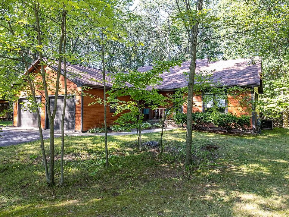 Custom-built 1-owner home has been well cared for and is ready for you to enjoy the wooded lot & peaceful setting whether you’re sitting on your Trex deck w/lighting, playing in the yard, sitting on the front porch, or inside peering out, this home is sure to suit your needs. Beautiful, refinished hardwood floors & a new wood fireplace add warmth and character through the open concept design. Split bedroom layout w/primary en-suite. In the lower level is a family room, laundry room & an area with an egress window which could be a possible 4th bedroom. Roof new 2021. Exterior has new Diamond Kote siding & entry doors. Trex Deck 2021. Furnace 2017, water heater 2016, newer well pump, new remote blinds in great room.