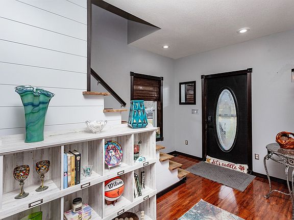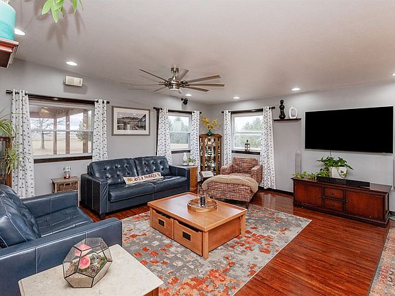 You will adore this gorgeous 16-acre property. The 2580 sq. ft, 4 BR, 2.5 BA two-story home boasts a beautifully designed wraparound front porch with exposed wooden beams surrounded by exquisite landscaping. A lovely location for summer evening rocking chair conversations. On the back side of the home, you’ll find a large private patio area, fire pit, playset, and sitting garden. Just steps away you'll find a pond and a gardening shed—the perfect outdoor area for entertaining groups of all ages. There is also a large outbuilding located further out on the property. The home's main level has 9 ft ceilings and features a large open-concept eat-in kitchen with waterfall countertops, tile flooring, stunning light fixtures, a unique corner office area, and a drop zone with built-in storage cubbies, shoe racks, and coat hooks. There is a separate dining area and a large sunny living room with hardwood flooring. Off the kitchen through a set of French doors, you’ll find a cozy den/study area with another set of French doors on the opposite side. To round out the main level is a bedroom, a ½ bath, a spacious laundry room, a beautifully designed front entryway, and a staircase leading to the upper level. Everywhere you turn you’ll find eclectic design elements that add character to this charming home. The second level features a large landing area with gorgeous hardwood flooring, a full bathroom, 2 bedrooms, and a primary bedroom with an ensuite bathroom. A very impressive property!