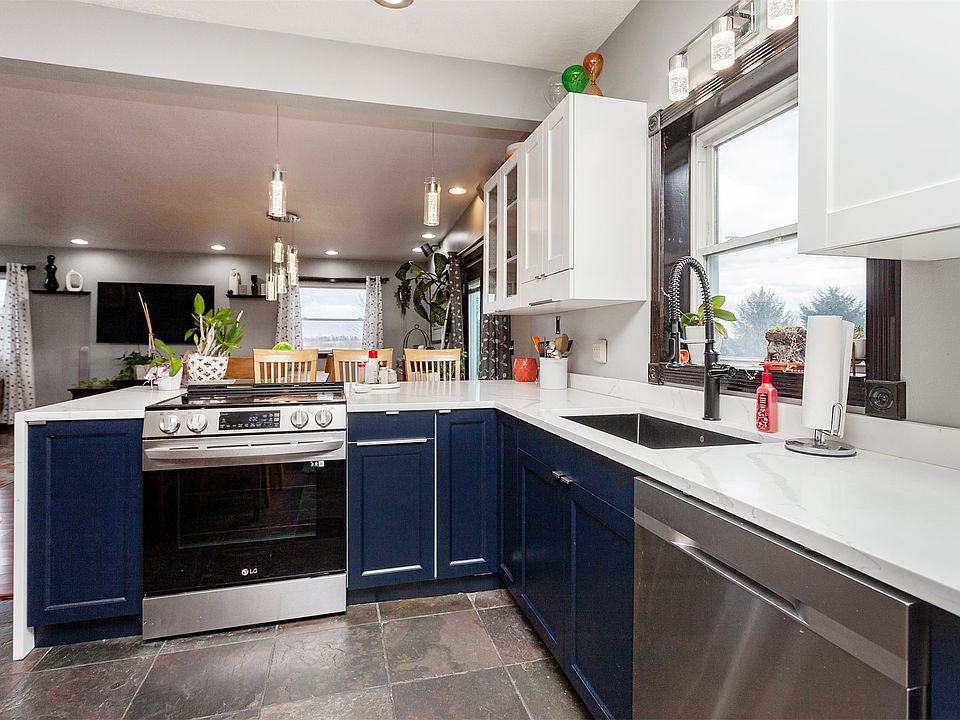 Unique corner office areaGorgeous hardwood flooringOpen-concept eat-in kitchenHardwood flooringStunning light fixturesEclectic design elementsLarge private patio area