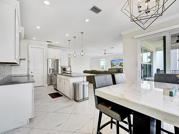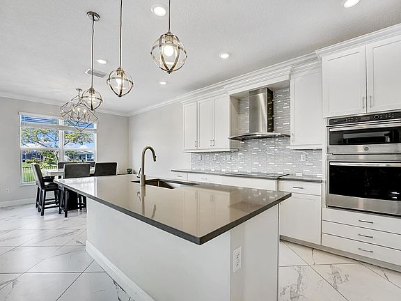 This stunning 5-bedroom + loft, 3-bathroom home offers an expansive open-concept floor plan, perfect for modern living. The chef's kitchen is a standout feature, boasting stainless steel appliances, a center island, and a walk-in pantry. The first floor includes a private guest suite with a full bathroom, while the second floor features a luxurious primary suite with a spacious walk-in closet, three additional bedrooms, a loft, and a convenient upstairs laundry room.Enjoy ample parking with a 2-car garage and an expanded driveway accommodating up to 5 cars. The beautifully fenced backyard offers serene water views and a desirable southwest exposure--perfect for enjoying breathtaking sunsets without the intense heat.Ideally located within walking distance to the clubhouse, where you'll find a resort-style pool, fitness center, playground, children's center, and more!